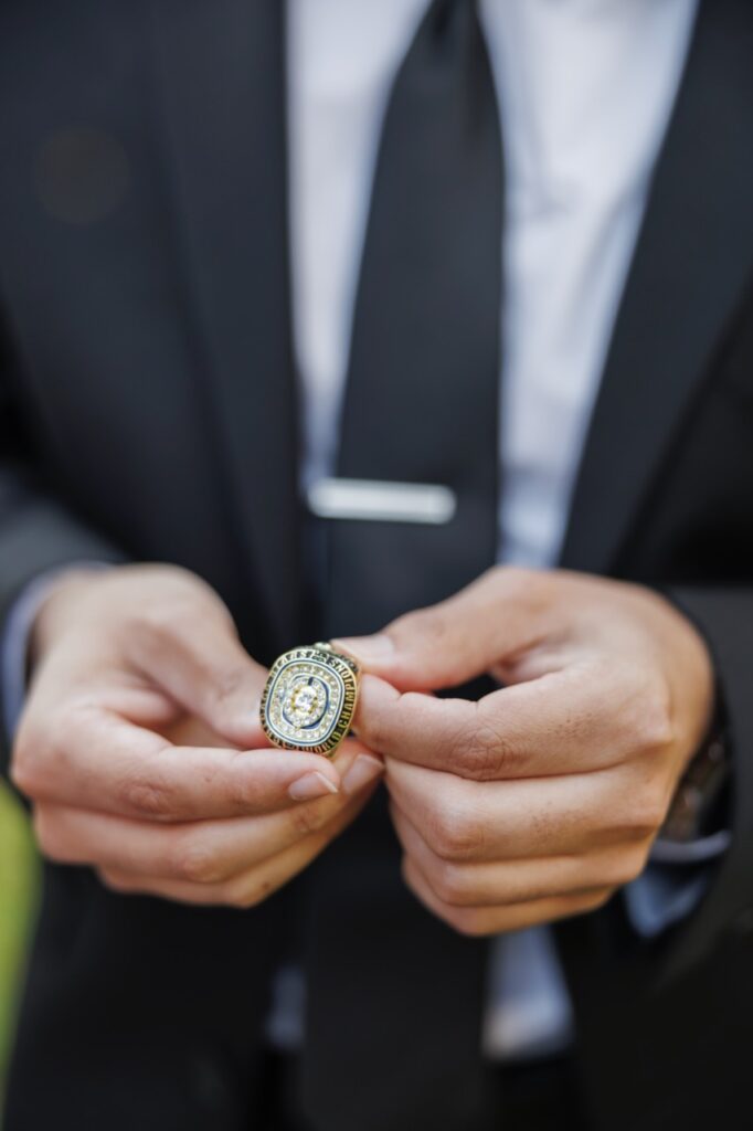 Brendon has been a die-hard Chicago Bears fan for a long time. Vijaya, on the other hand, had no previous ties to the Bears and jokingly chose a rival team — the Tampa Bay Buccaneers — simply to keep things fun and add a little healthy competition to their relationship.